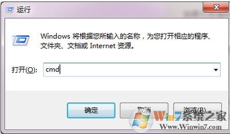1、<Win+R>快捷鍵進(jìn)入運(yùn)行對(duì)話框,在對(duì)話框輸入cmd,進(jìn)入命令提示符工具,如圖: