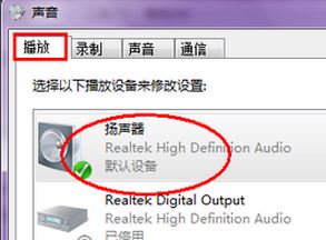 3、在 聲音選項(xiàng)中,找到播放選項(xiàng)卡,然后下面會(huì)顯示一個(gè)系統(tǒng)默認(rèn)的播放設(shè)備,即揚(yáng)聲器,點(diǎn)擊一下這個(gè)使用中的揚(yáng)聲器,然后點(diǎn)擊右下角的屬性按鈕,如圖: