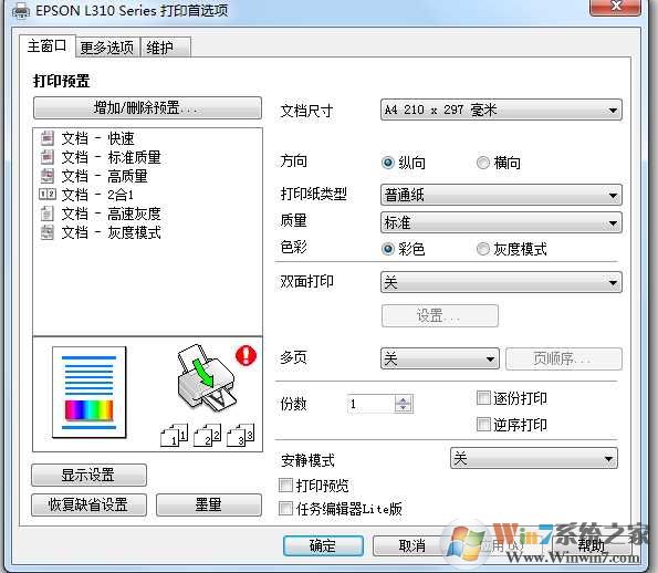 4、右鍵打印機(jī)首選項(xiàng),可以進(jìn)行打印機(jī)打印尺寸、紙張、顏色、方向、打印質(zhì)量等等設(shè)置;