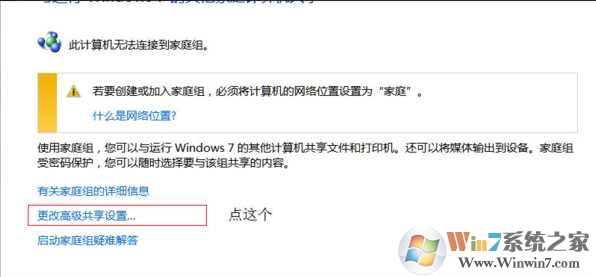 在桌面---計(jì)算機(jī)(右鍵)---屬性,點(diǎn)擊“更改設(shè)置”,自己將Win7系統(tǒng)和共享打印機(jī)的電腦調(diào)整為同一工作組。