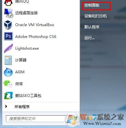 1、首先我們打開電腦左下角開始菜單,打開右上角的控制面板;
