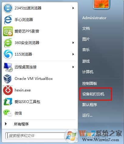 1、在開(kāi)始菜單中打開(kāi)打印機(jī)和設(shè)備;