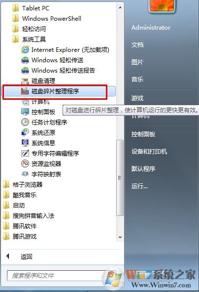 1、點擊【開始】-【所有程序】-【附件】-【系統(tǒng)工具】-【磁盤碎片整理程序】,打開磁盤碎片整理程序。