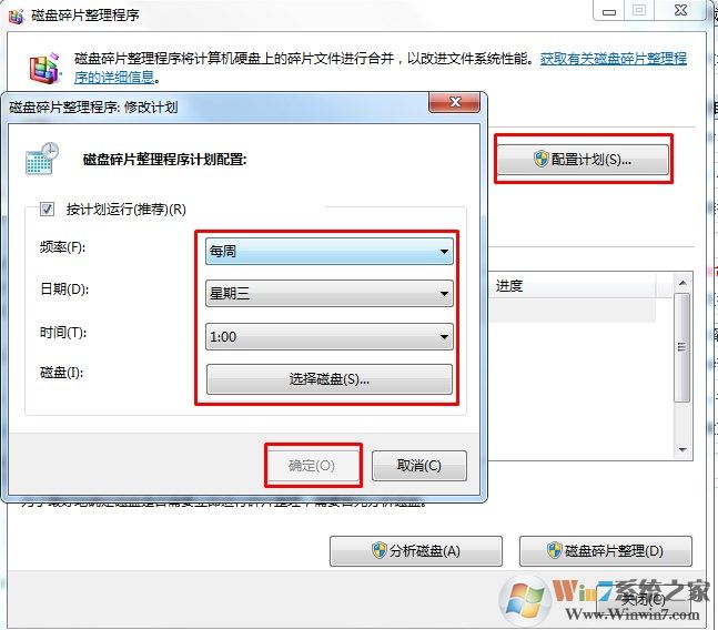 注:如果你想開啟磁盤碎片整理計劃,不取消勾選就行了,并在計劃配置里面設(shè)置好相關(guān)的選項就行了。
