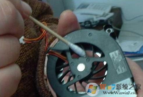 3、散熱模組的散熱風(fēng)扇內(nèi)外的灰塵狀況,需要進(jìn)行全面的清理??墒褂玫墓ぞ撸核⒆印⑵だ匣?,在外表可適當(dāng)使用棉簽+酒精擦拭。如下圖所示: