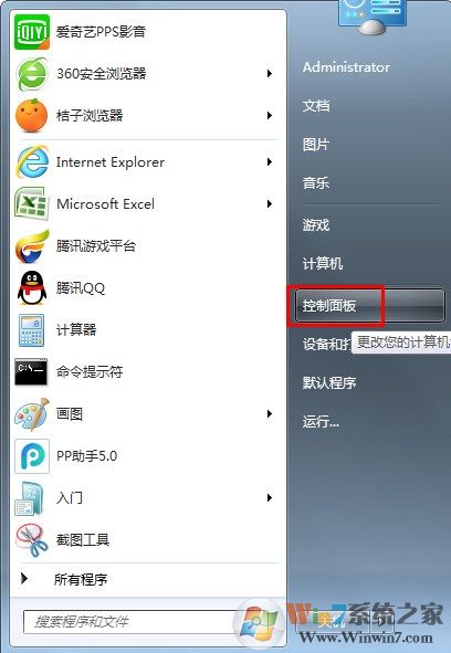 1、開始菜單選擇控制面板