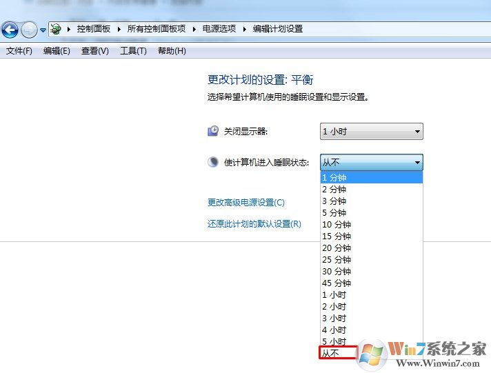 4、將是計(jì)算機(jī)進(jìn)入休眠狀態(tài)選擇為從不,軟后保存計(jì)劃