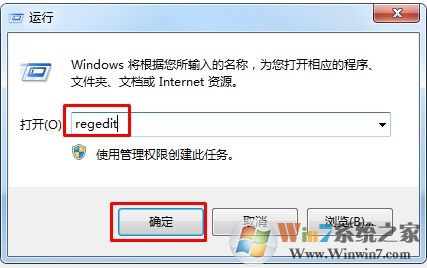 一、先在Win7系統(tǒng)上使用Win+R鍵調(diào)出運行對話框,然后在運行窗口中輸入regedit命令,打開注冊表編輯器。