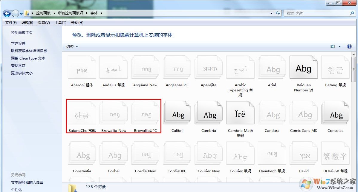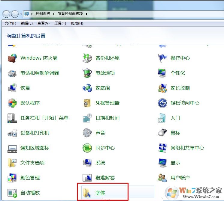 2、可以在控制面板上選擇“大圖標”或是“小圖標”打開方式,即可查看到“字體”文件夾,然后在進入字體文件夾上,將自己不認識的字體刪除。
