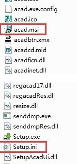 2、下載CAD64位支持包。解壓后里面含 acad.msi 和Setup.ini 兩個(gè)文件,如圖所示: