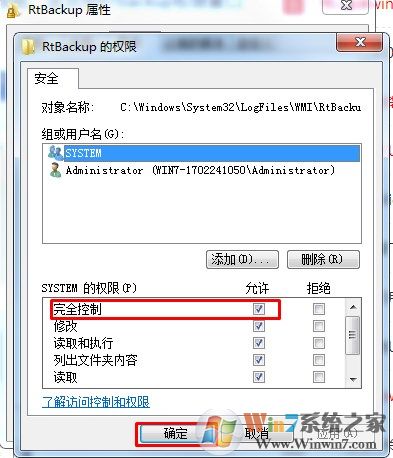 2、接著在“選擇用戶或組”的窗口中,將SYSTEM輸入,再點擊確定按鈕。返回到RTbackup權限窗口中,在SYSTEM權限下,將“完全控制”設置為“允許”,再點擊確定按鈕。