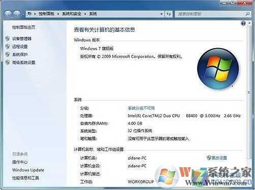 最后重新啟動計算機(jī),打開Win7系統(tǒng)屬性后我們可以看到4G內(nèi)存完美顯示出來。