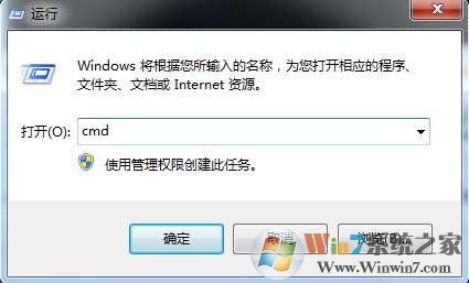 1、選擇“開始”-“運行”命令,在運行命令欄里輸入“CMD”打開管理員<也可同時按開始鍵+R>