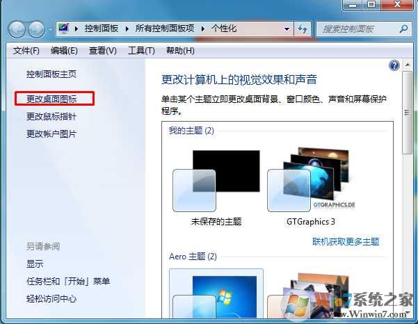 2、左側(cè)的“更改桌面圖標(biāo)”鏈接;