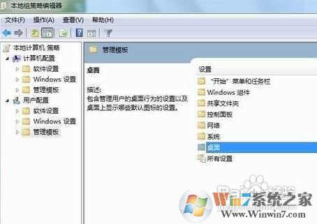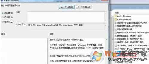 3、進入桌面管理頁面后,雙擊:“從桌面刪除回收站圖標”,進入配置頁面,選擇“未配置。”點擊確定。推出策略組,刷新一下桌面。