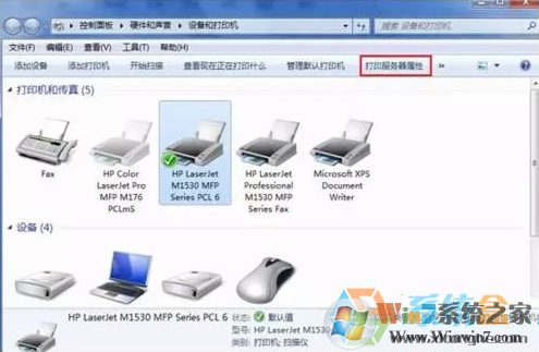 2、選中我們要操作的打印機(jī),然后點(diǎn)擊打開【打印機(jī)服務(wù)屬性】頁面。