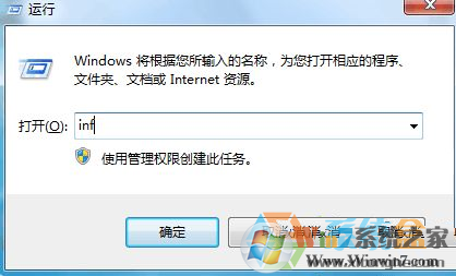 5、同時(shí)按住【W(wǎng)indows鍵】+【R】快捷鍵,在運(yùn)行界面輸入【inf】單擊回車鍵。如圖5: