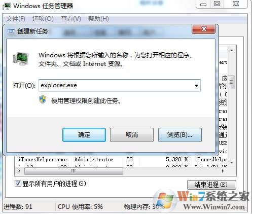 2、然后不要關(guān)閉任務(wù)管理器,點(diǎn)擊文件——》運(yùn)行,輸入explorer.exe回車(chē);