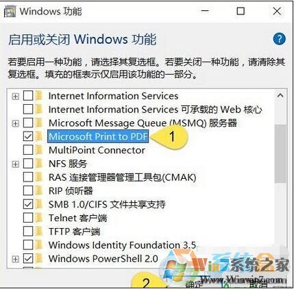 2、找到并重新勾選 Microsoft Print to PDF — 再點(diǎn)擊確定重新安裝即可