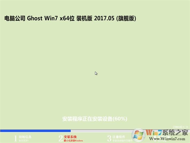 3、電腦會自動(dòng)重啟并開始安裝電腦公司W(wǎng)in7旗艦版。