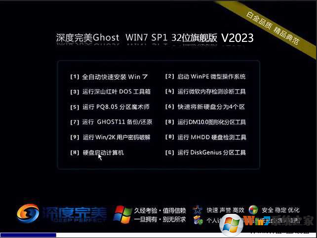 深度完美Win7旗艦版_Win7 32位完美裝機(jī)版系統(tǒng)光盤啟動(dòng)界面,包含常用工具;