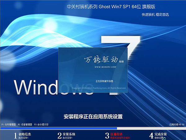 3、電腦會(huì)自動(dòng)重啟并開(kāi)始安裝雨林木風(fēng)Win7旗艦版。
