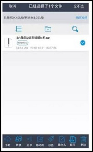 3、更簡(jiǎn)單的是直接上傳壓縮文件,再解壓縮。選定壓縮包,底部【解壓】按鈕;