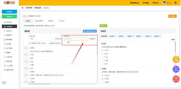 3、從剛才新建的試卷右側-【新增試題】進入批量錄題頁面