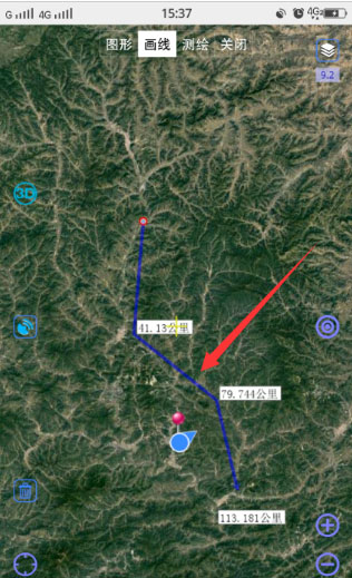 不區(qū)分圖形框選、畫線測距和測繪,工作完成后按住屏幕可以保存工作;