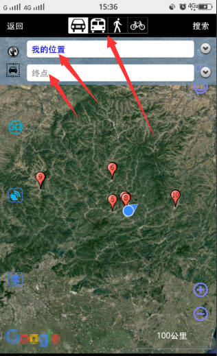 路線,選擇到達目的地的交通方式后,確定起點和終點,自動生成導(dǎo)航路線圖;
