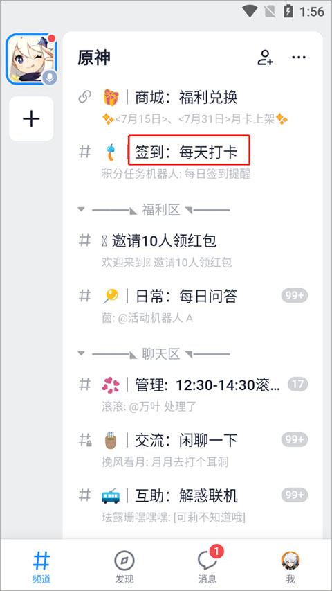 1、進(jìn)入軟件,選擇關(guān)注的頻道進(jìn)行簽到打卡可獲得積分