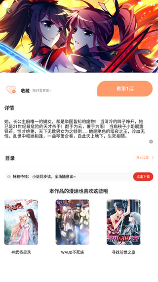 1、隨時閱讀:支持在線播放、離線閱讀,無網(wǎng)絡(luò)狀態(tài)也能隨時看漫畫;(WIFI無線網(wǎng)絡(luò)下,快速下載,離線閱讀)。2、海量內(nèi)容:上萬本日本、韓國、歐美和國內(nèi)的精品漫畫。