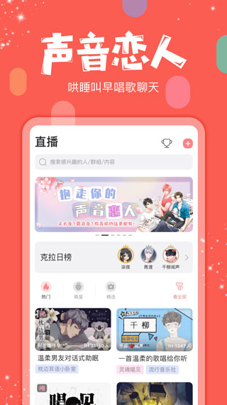 4、聲優(yōu)互動(dòng):各類聲線主播,治愈系聲音,互動(dòng)暢談。