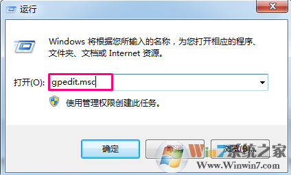 1、點(diǎn)擊開始菜單,選擇并打開運(yùn)行,輸入“gpedit.msc”,點(diǎn)擊確定;