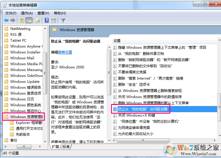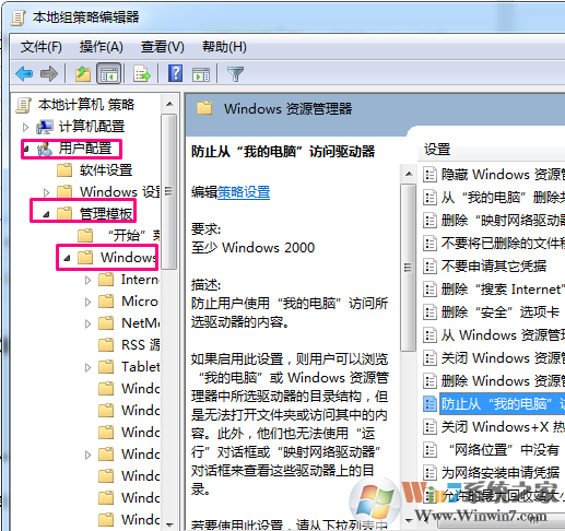 如果你不想讓他人訪問你的磁盤,可以將“防止從“我的電腦”訪問驅(qū)動器”修改為“已禁止”;相反如果允許訪問,則修改為“已啟用”。