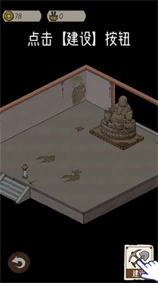 2、耐心等待香客進(jìn)入天王殿內(nèi),面對破爛不堪的天王殿內(nèi)部,可以點擊【建設(shè)】按鈕來改善天王殿的環(huán)境。
