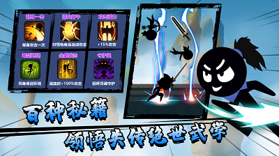 1、選擇強(qiáng)大的火柴人來展示強(qiáng)大的武功,戰(zhàn)斗內(nèi)容豐富。