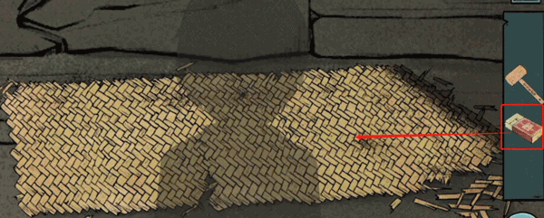 32、進(jìn)入山洞來到右邊,使用火柴點(diǎn)燃地上的草席得到【草木灰】