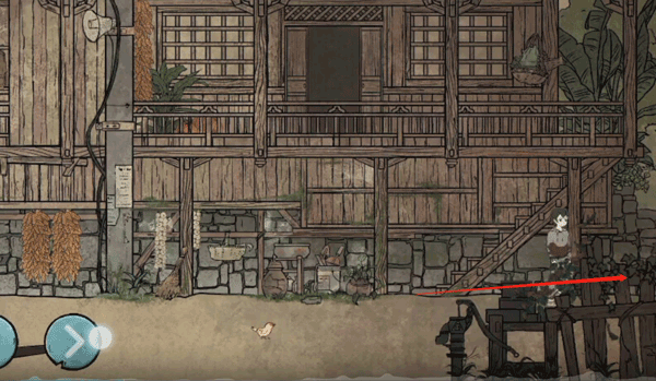 5、從室內(nèi)的木梯走向2樓,來到第3個(gè)房間的門口,在竹籃子里得到【符號(hào)環(huán)】