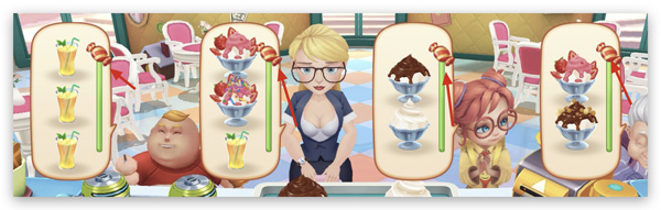 細心地玩家可能已經(jīng)發(fā)現(xiàn)了,在文中的第一張圖中,已經(jīng)把糖給了顧客,所以,才能放肆的進行'連連上菜'!
