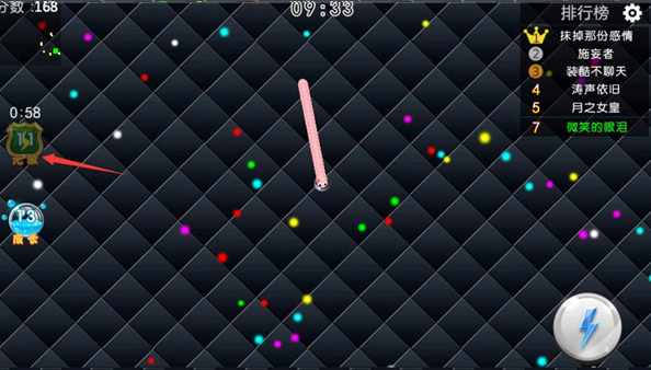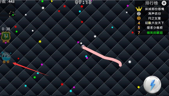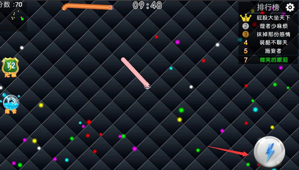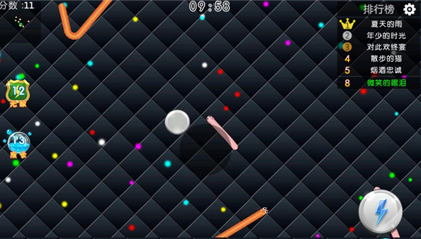 4、點擊左邊的無敵可以使你的蛇蛇獲得暫時性的無敵;