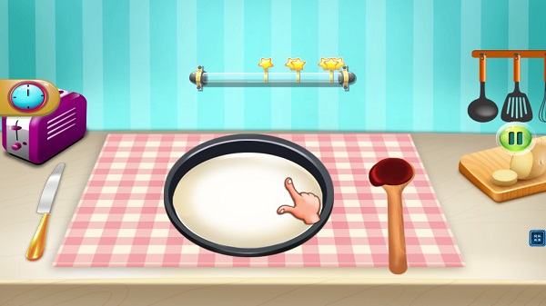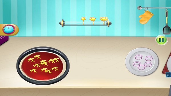1、進(jìn)入游戲,便是對芝士煎蛋卷、漢堡牛排、披薩和蔬菜卷的烹飪制作,任選之一。