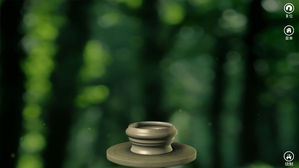 當(dāng)對(duì)陶罐的造型比較滿意的時(shí)候,點(diǎn)擊屏幕右下角的firing圖標(biāo),就可以將土胚放到窯中燒制。不過不用擔(dān)心,只需幾秒鐘燒制過程就完成了。燒制完成的陶器造型十分逼真,甚至可以看到瓶口的細(xì)小的裂紋。