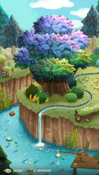 2、劃到左邊的頁(yè)面就可以開(kāi)始收集小魚(yú)和木頭了
