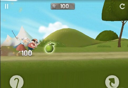 老奶奶需要搶在盜賊之前拿到蘋果,還要在路上賺取購買道具的金幣,每次成功跳躍都會獲得評價(jià)分?jǐn)?shù)。
