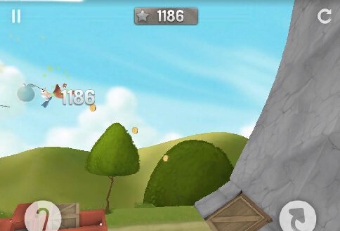 右側(cè)的跳躍按鍵讓老奶奶可以輕松躍過短板或箱子,長按按鈕可以讓老奶奶在空中完成前滾翻。