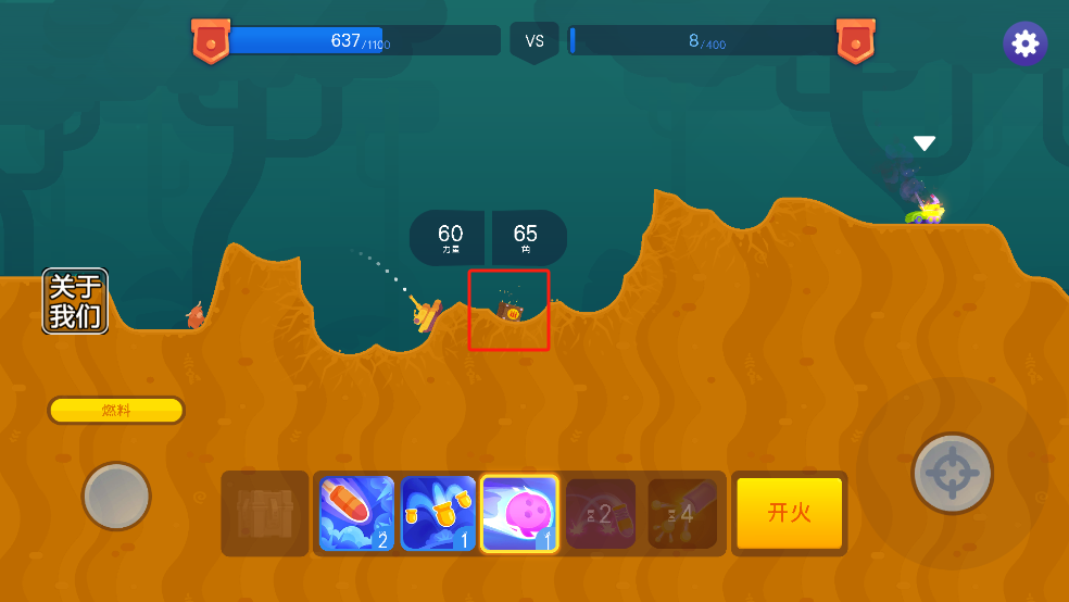 3、游戲中還有不同的炮彈可以選擇,在子彈數(shù)量消耗完之前擊敗對(duì)手