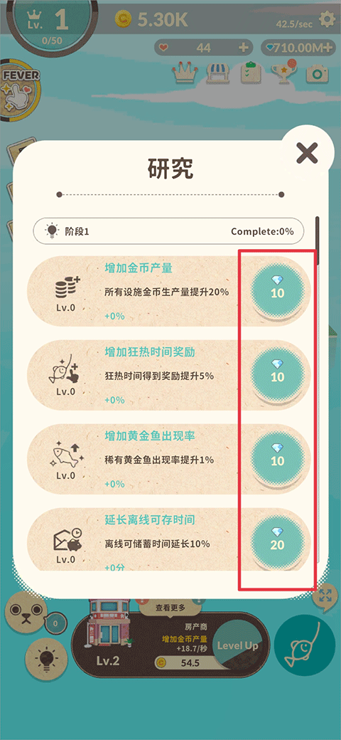 5、當(dāng)金幣足夠多時,可以使用金幣對已解鎖的房屋進行等級升級