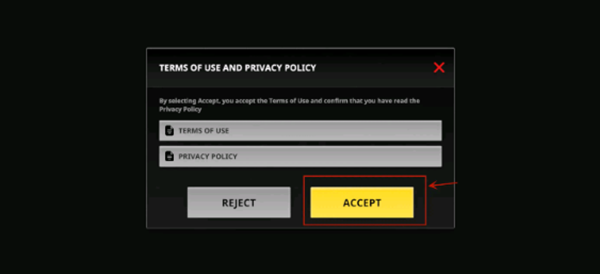 1、加載完成進(jìn)游戲后,會(huì)跳出一個(gè)彈窗,這是一些"游戲協(xié)議",直接點(diǎn)【ACCEPT】就可以。