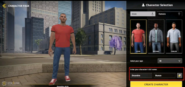 7、進(jìn)游戲之后還要有個(gè)選人界面,可以選男性/女性,在這里改名字會(huì)決定你在游戲里的名字。